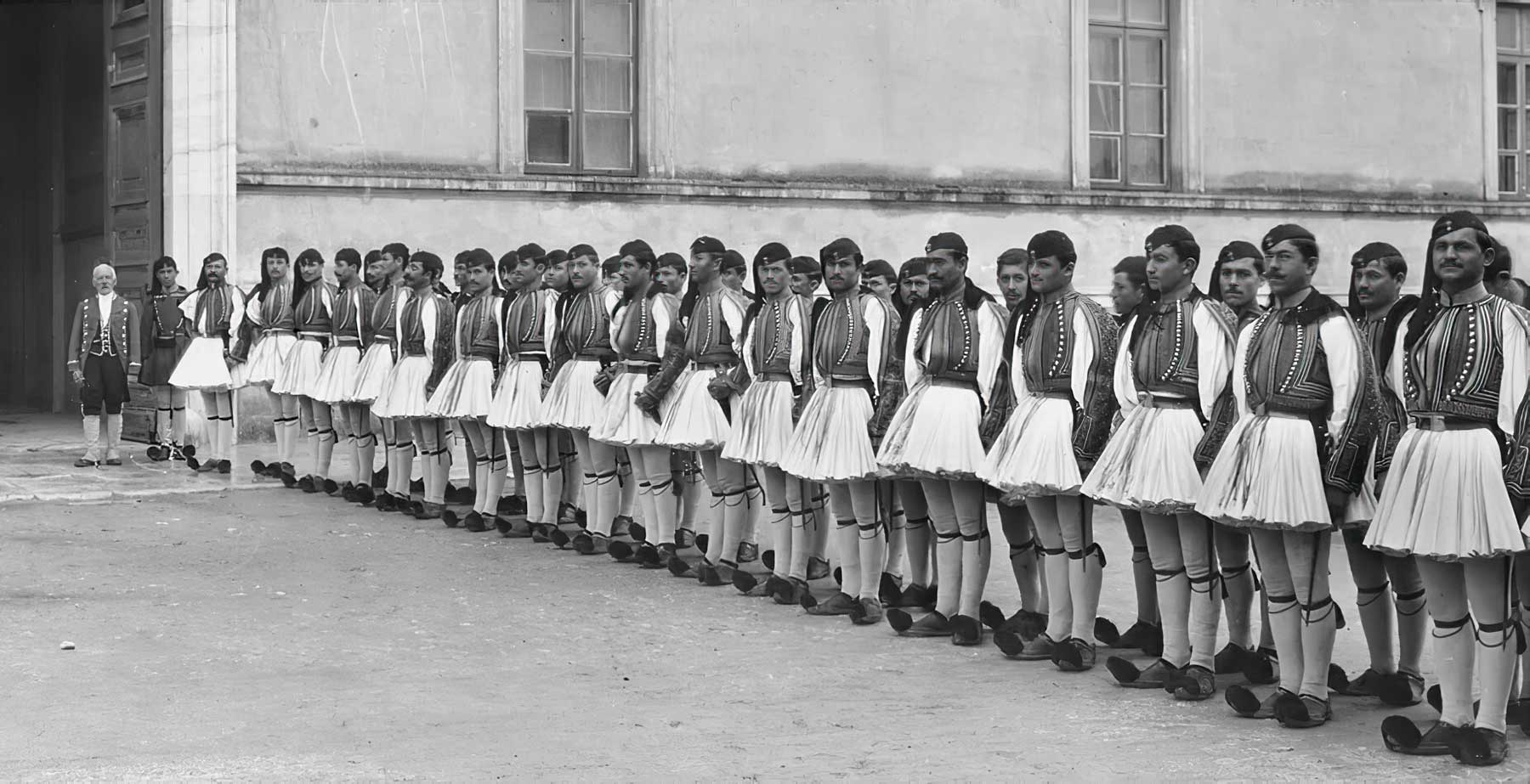Εύζωνες, Φωτογραφία του διακεκριμένου Βρετανού φωτογράφου Alexander Lamont Henderson. προσωπικού φωτογράφου της βασίλισσας Βικτωρίας, κατά τη διάρκεια της επίσκεψής του στη χώρα μας στις αρχές του 1904. Μουσείο Μπενάκη.