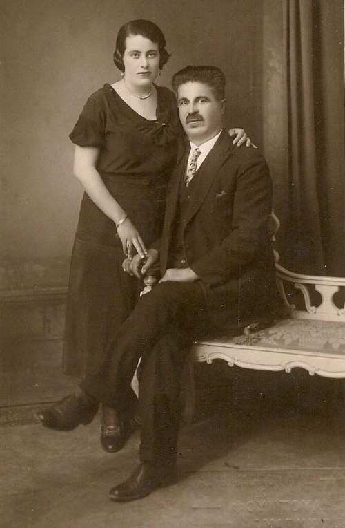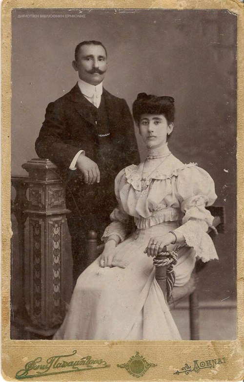 Ασπασία Φασιλή και ο σύζυγος Κοτσιομύτης. Αθήνα, περ. 1900. Φωτό Παπαμήτρος. Αρχείο: Ανθούλα Λαζαρίδου-Δουρούκου.