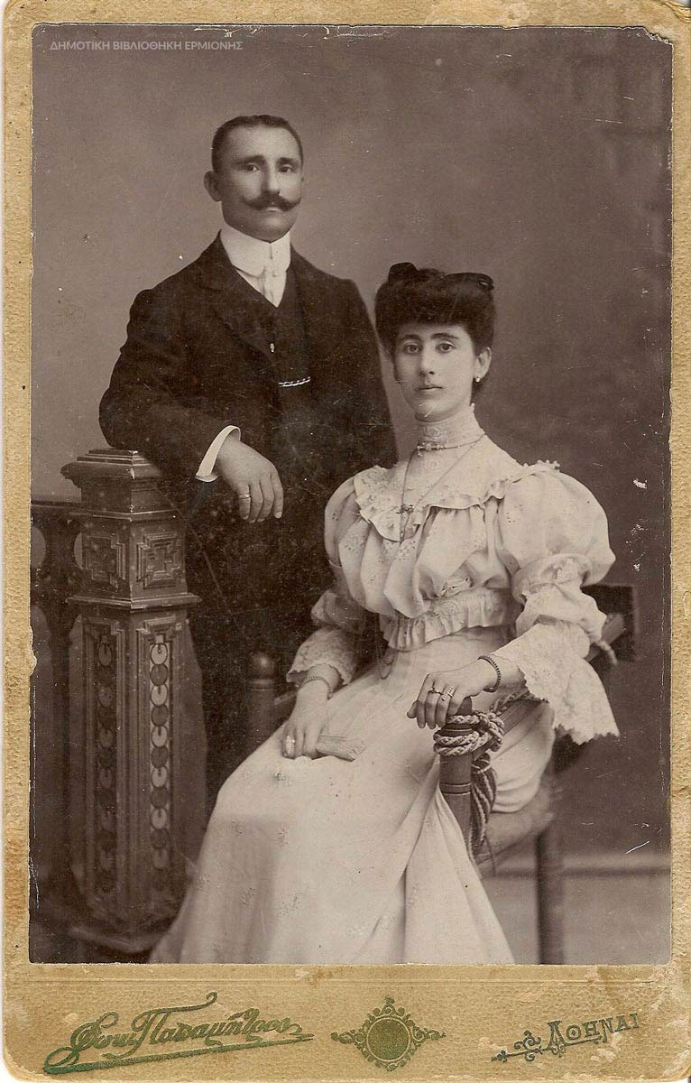 Ασπασία Φασιλή και ο σύζυγος Κοτσιομύτης. Αθήνα, περ. 1900. Φωτό Παπαμήτρος.