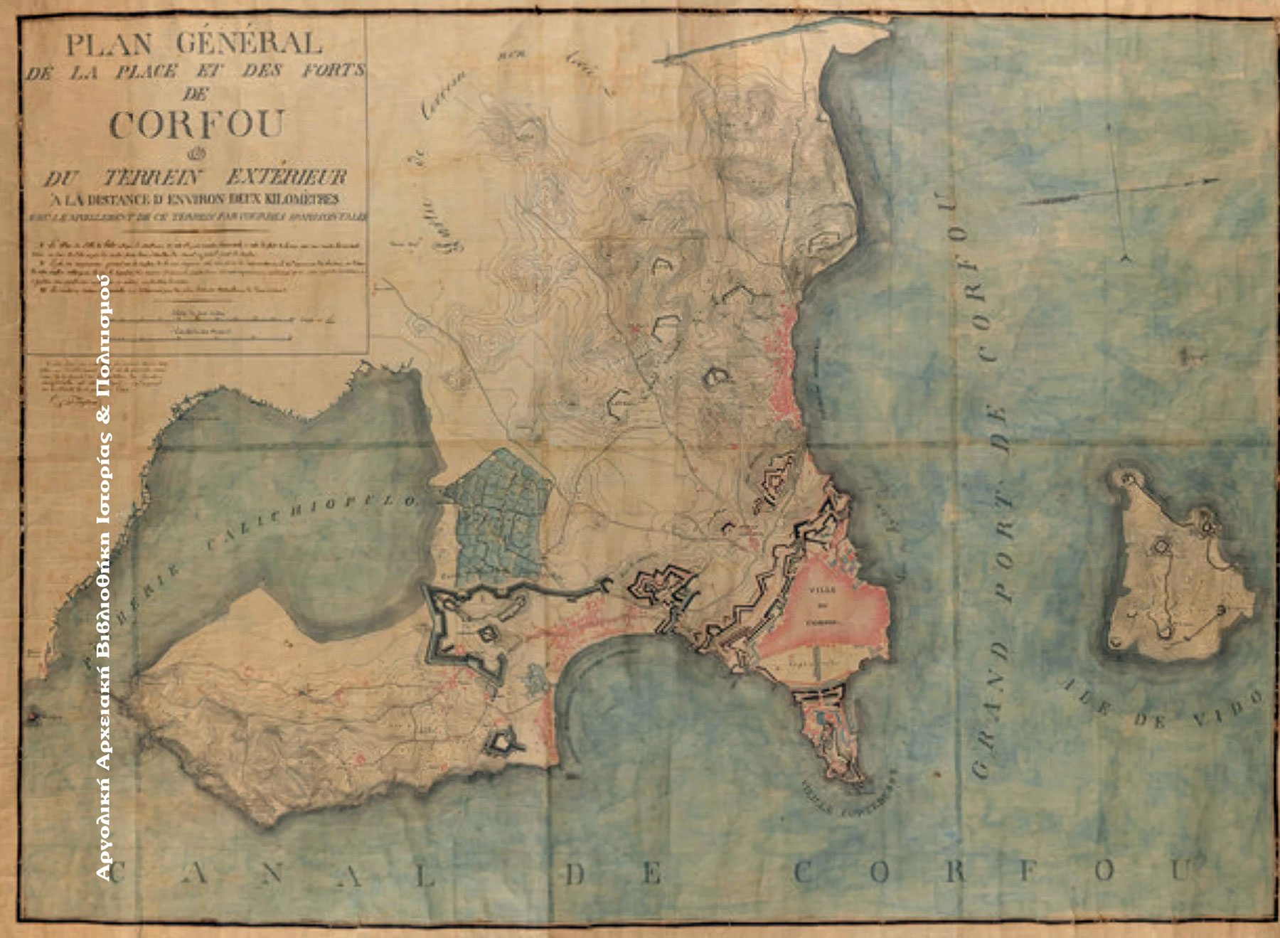 Ο χάρτης του Dufour των οχυρώσεων της Κέρκυρας το 1811-12, το πρωτότυπο βρίσκεται στο Dépôt de la Guerre (στρατιωτικό αρχείο και το τμήμα χαρτογραφίας της Γαλλίας) στο Παρίσι.
