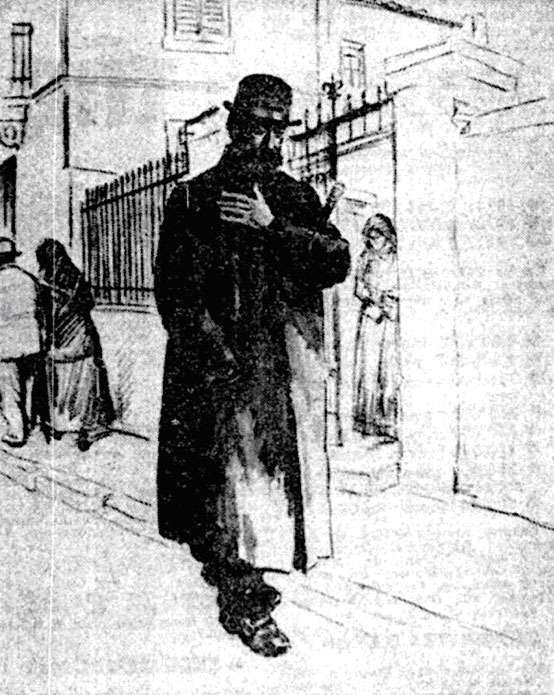 Ο Παπαδιαμάντης στην οδό Άρεως (σχέδιο του Νίκου Νομικού).