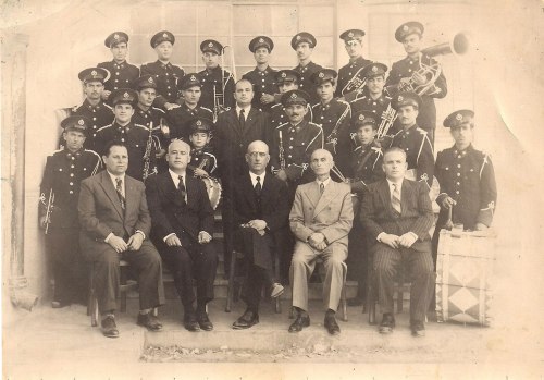 Η Φιλαρμονική του Δήμου Ναυπλίου τη δεκαετία του 1950. Στο μέσο όρθιος ο αρχιμουσικός Β. Χαραμής. Φιλαρμονική Ναυπλίου, 1948. Φωτογραφία από το αρχείο Δέσποινας Θ. Κοΐνη.