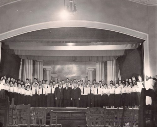 Ανέκδοτη σπάνια φωτογραφία της χορωδίας Ναυπλίου τέλη δεκαετίας του 1950. Στη μέση διακρίνονται ο Δήμαρχος Δ. Σαγιάς, ο Βασίλης Χαραμής, ο τρίτος άγνωστος. Φωτογραφία από το αρχείο του Θέμη Χαραμή.