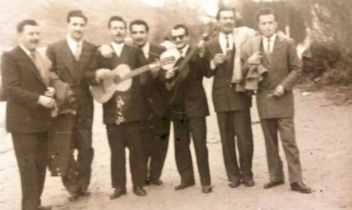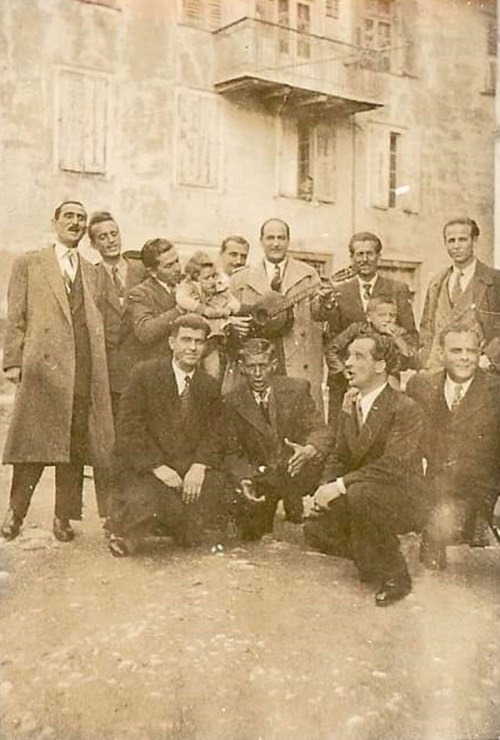 Κάτω καθιστός πρώτος στα αριστερά ο ξακουστός τενόρος του Ναυπλίου Μίμης Μπέλιας. Ίσως ο πιο κορυφαίος από τα αηδόνια του Ναυπλίου. Και καθιστός τελευταίος στα δεξιά μάλλον ο Γιώργος Λούμος. (Οι πληροφορίες για προέρχονται από τον Τάσο Ηλιάδη ανιψιό του Μίμη Μπέλια).