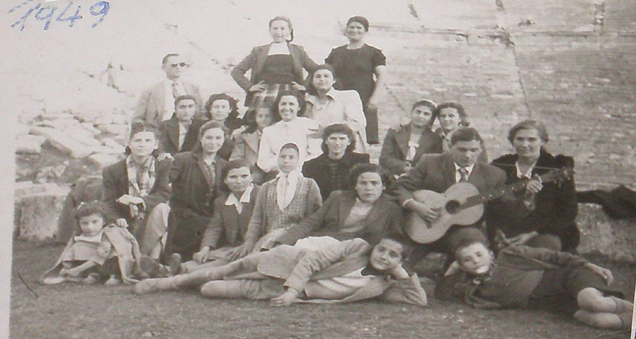 Έξοδος Ναυπλιωτών το 1949 στο θέατρο Επιδαύρου. Απαραίτητο σύνεργο της παρέας για την αποτίναξη του ζυγού της καθημερινότητας η κιθάρα.