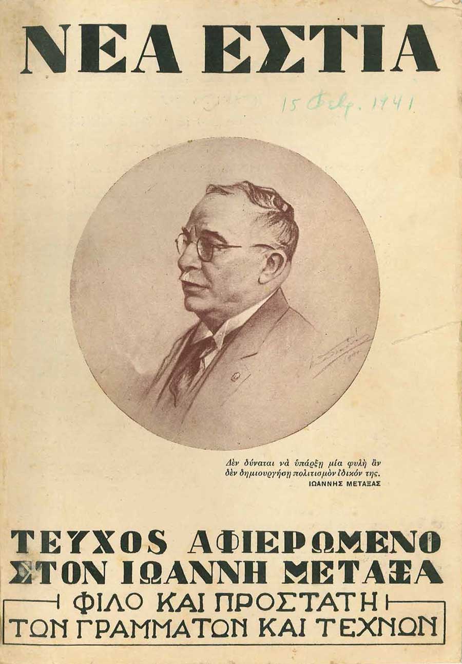 Αφιέρωμα της «Νέας Εστίας» (15.2.1941), με αφορμή τον θάνατο τού Ιωάννη Μεταξά.