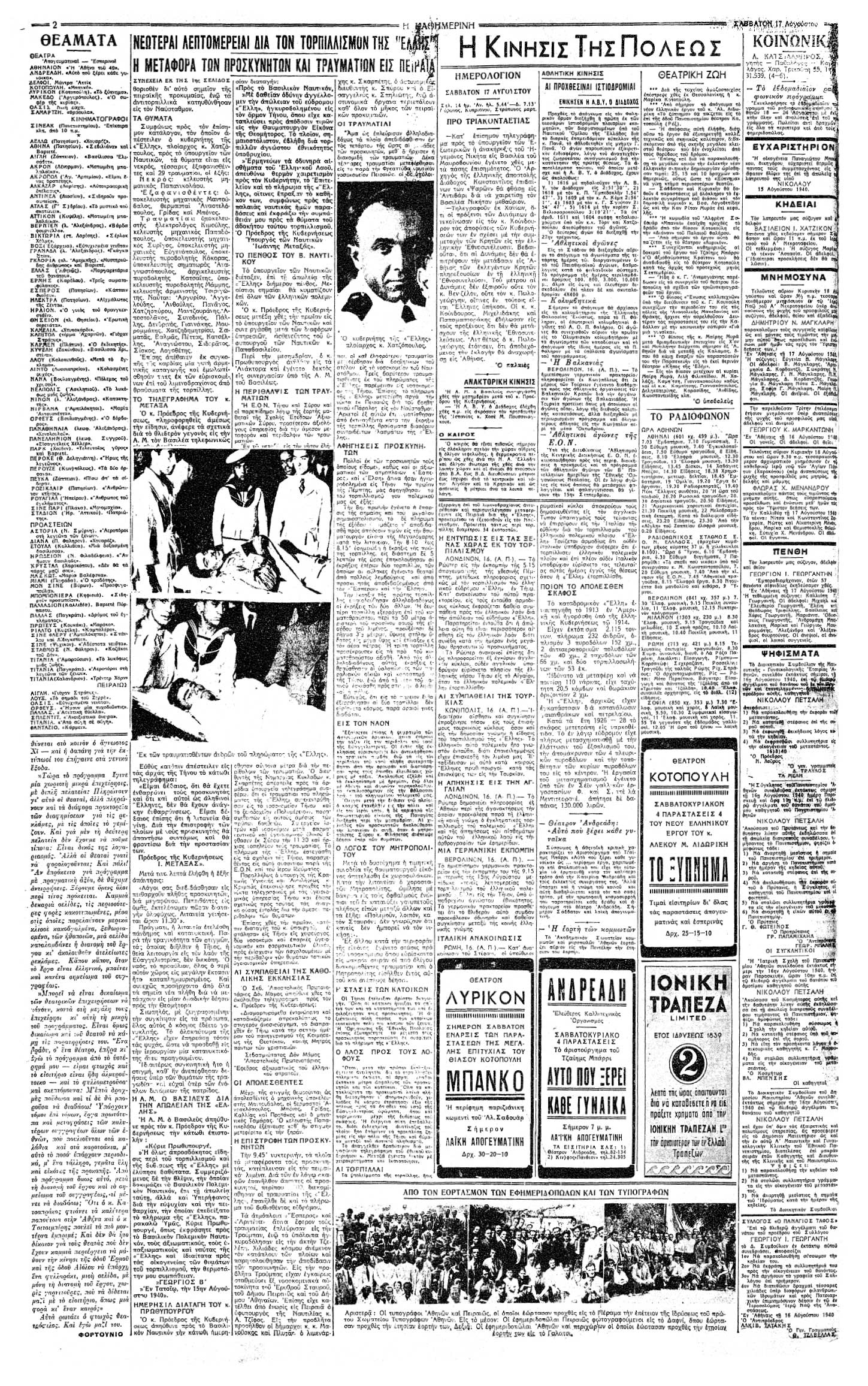 Εφημερίδα «Καθημερινή», Σάββατο 17 Αυγούστου 1940. Διαβάστε ολόκληρο το δημοσίευμα για τον τορπιλισμό της «Έλλης».