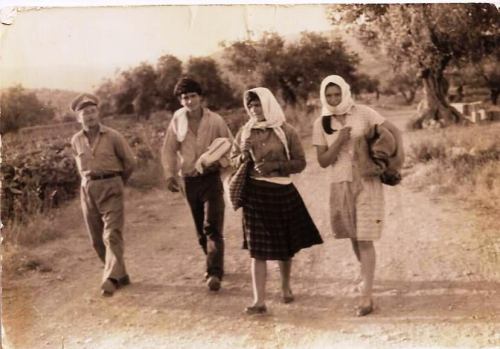 Γυρίζοντας από τις ελιές: Θανάσης Βουρλής (δραγάτης) – Ελευθερία Βλάσση – Κατσέλη (Αρχείο: Βιβής Σκούρτη).