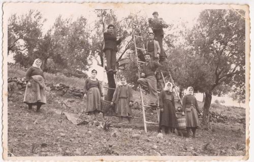 Συγκομιδή ελαιοκάρπου στον Δοκό: Τρίτη από αριστερά Φλώρα Κοτταρά -Μπενάρδου, τελευταία από δεξιά Μαρίνα Άκληρου-Μίζη (Αρχείο: Βιβής Σκούρτη).