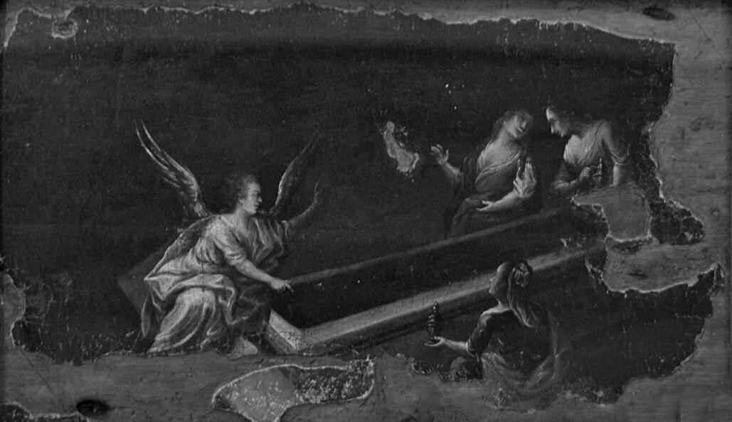 Εικ.3. Αγνώστου, «Ουκ Εστίν Ώδε», 7ος αιώνας, λάδι σε καμβά, 41×64 εκ., Πινακοθήκη Παπαδόπουλου, Πανελλήνιο Ιερό Ίδρυμα Ευαγγελιστρίας Τήνου.