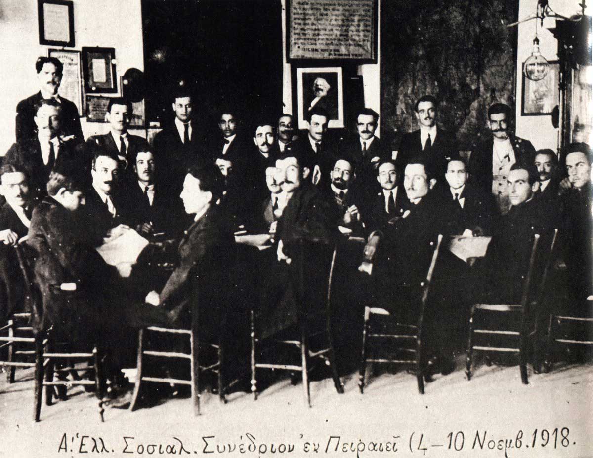 Φωτογραφία από το Πρώτο Σοσιαλιστικό Συνέδριο που συνήλθε στον Πειραιά στις 4-10 Νοεμβρίου του 1918, όπου ιδρύθηκε το Σοσιαλιστικό Εργατικό Κόμμα Ελλάδος (Σ.Ε.Κ.Ε.). Η εικόνα απεικονίζει τους συνέδρους του Α’ Πανελλαδικού Σοσιαλιστικού Συνεδρίου. Αθήνα, Φωτογραφικό Αρχείο Ε.Λ.Ι.Α.
