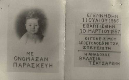 «Κάλεσμα στη βάφτιση της Παρασκευής Σπετσιώτη», 10-3-1957, Φωτογραφικό αρχείο Βιβής Σκούρτη».