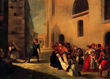 Διονυσίου Τσόκου: «Η δολοφονία του Ιωάννη Καποδίστρια» λάδι σε καμβά, 60 Χ 81 εκατ. Μουσείο Μπενάκη.