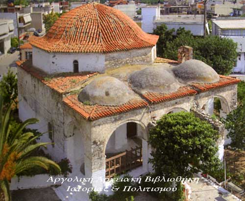 [85] Ο Πύρρος συμπληρώνει ότι «διά τήν κατασκευήν του κτιρίου τούτου έκάησαν όλα σχεδόν τά λευκά μάρμαρα τής Άργολίδας πρός κατασκευήν λευκής ασβέστου. Τό ώραΐον αυτό κτίριον, το όποιον άνεκαίνισεν ευνούχος τις του Σουλτάν Μπαγιαζίτου, έκρήμνισαν πρό μικρού οί Άργειοι, έπαίροντες έκείθεν τόν μόλυβδον καί τά μάρμαρα αύτοϋ- σώζονται όμως έως τώρα πολλώτατα ερείπια αυτού» (Sève 1979, 333 αλλά και 196-197).