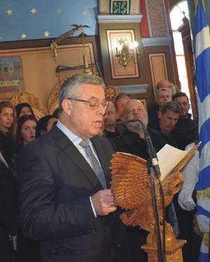 Εξοχώτατε κύριε Πρόεδρε της Δημοκρατίας, Σεβασμιώτατε, εκλεκτή και σεβαστή ομήγυρη, τιμώντας τη μνήμη των Αγωνιστών οφείλουμε να παραμείνουμε ενωμένοι όλοι μαζί, να αποδεχθούμε ό,τι αξίζει και να αγωνιστούμε ενάντια σε ό,τι μάς αλλοτριώνει. Αυτό πρέπει να είναι το αληθινό χρέος μας.