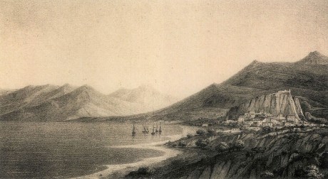 Καλαμάτα. Λιθογραφία του Α. St. Aulaire, 1835. Δημοσιεύεται στο Καλαμάτα, «Τόπος και Εικόνα», Καλαμάτα, εκδ. Δημοτική Επιχείρηση Πολιτιστικής Ανάπτυξης Καλαμάτας, 1996