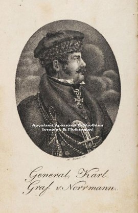 Ο στρατηγός Normann (Karl Friedrich Leberecht Graf von Normann-Ehrenfels 1784–1822), διοικητής του τακτικού στρατεύματος (Σύνταγμα, Τάγμα Φιλελλήνων, Επτανήσιοι).