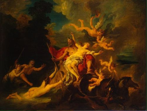 Όταν γεννήθηκε η Αφροδίτη, οι θεοί έκαναν δεξίωση και ανάμεσα στους καλεσμένους ήταν και ο Πόρος, ο γιος της Μήτιδας. Αφού λοιπόν έφαγαν και ήπιαν, ο Πόρος μέθυσε από το νέκταρ – κρασί δεν υπήρχε ακόμη – και ζαλισμένος από το ποτό μπήκε στον κήπο του Δία και κοιμήθηκε. Τότε κατέφθασε και η Πενία για ζητιανιά από το πλούσιο και άφθονο γεύμα. Στάθηκε στην πόρτα, είδε τον Πόρο να κοιμάται και έβαλε στο μυαλό της να κάνει ένα παιδί με τον Πόρο, μήπως και καταφέρει μ’ αυτό να ξεφύγει από τη μιζέρια της και ξάπλωσε πλάι του. Εκείνος, μεθυσμένος καθώς ήταν, ήρθε σε επαφή μαζί της και έτσι έγινε η σύλληψη του Έρωτα. Γι’ αυτό ο Έρωτας, επειδή γεννήθηκε στη δεξίωση για τη γέννηση της Αφροδίτης, έχει γίνει ακόλουθος και υπηρέτης της Αφροδίτης. Και συνάμα, επειδή η Αφροδίτη είναι όμορφη, και ο Έρωτας από τη φύση του είναι εραστής της ομορφιάς.