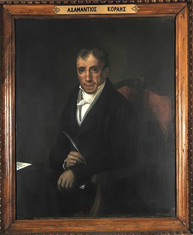 Προσωπογραφία του Αδαμάντιου Κοραή (1748-1833), ελαιογραφία σε μουσαμά. Εθνικό Ιστορικό Μουσείο.